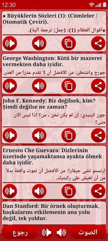 يدعم التطبيق ميزة "تحويل النص إلى كلام" وبالتالي يمكنك تعلم التركية بالصوت, وأيضاً يتضمن خاصية الإشعارات "Notifications" والشاشات المصغرة "Widgets" والتي تعرض في كل يوم جملة جديدة.