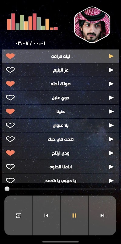 • خاصية اضافة شيلات بدر العزي الئ قائمة المفضلة