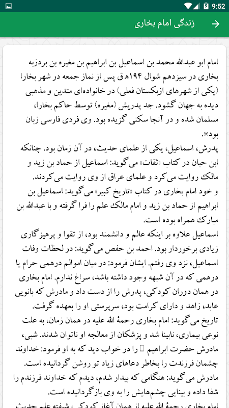 الترجمة الفارسية للسخان الصحيح وهو ملخص السخان الصحيح. صحيح البخاري هو أحد أهم كتب الأحاديث النبوية في العالم الإسلامي ، ووفقًا للجمهورية الإسلامية ، فهو الكتاب الأكثر صوابًا بعد القرآن الكريم. كتبه الإمام البخاري لمدة 16 عامًا واختار من بين 600.000 حديث حافظ عليه. يشمل هذا العمل الثمين الروايات التي نقلها نبي الإسلام الحبيب فيما يتعلق بالمراسيم الفقهية والقضايا الاجتماعية والاقتصادية والثقافية للمسلمين والطقوس الإسلامية. قام مؤلف هذا العمل ، وهو أحد العلماء والعلماء البارزين في اليمن في القرن التاسع الهجري ، باختيار بعض أهم التقاليد الصحيحة لاختيار وتلخيص كتاب الإمام البخاري حتى يكون متاحًا دائمًا لمسلمي الله والحقيقة. كن ودودًا. يبدأ الكتاب بصفحة تمهيدية مفصلة للمترجم المؤلف من 100 صفحة ، والذي يصف فيه بالتفصيل سيرة الإمام البخاري وأعماله ويحدد الفضائل الأخلاقية والعلمية للإمام.