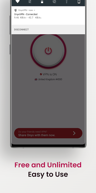 Onyx VPN هي شبكة VPN مجانية وغير محدودة.