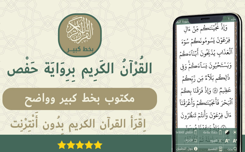 قران كريم بخط كبير وواضح بدون نت مع تفسير القران والبحث في القرآن الكريم