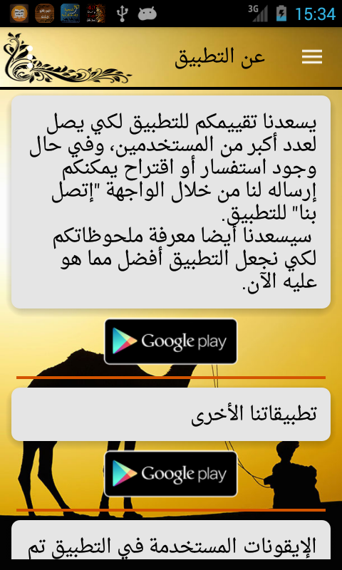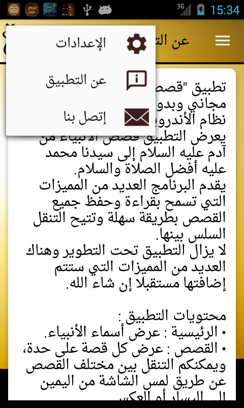 تطبيق "قصص الأنبياء" هو تطبيق مجاني وبدون إشهارات يعمل على نظام الأندرويد للهواتف الذكية.