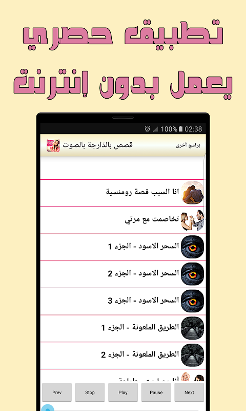 تطبيق " قصص بالدارجة مسموعة بدون نت" يتميز بطريقة سلسة وبسيطة في القراءة ,ويحوي في صفحاته مجموعة من قصص بالدارجة التي قلما تجدها في زمننا الحاضر , ستجد أيضا الحكمة والعبرة من كل قصة .