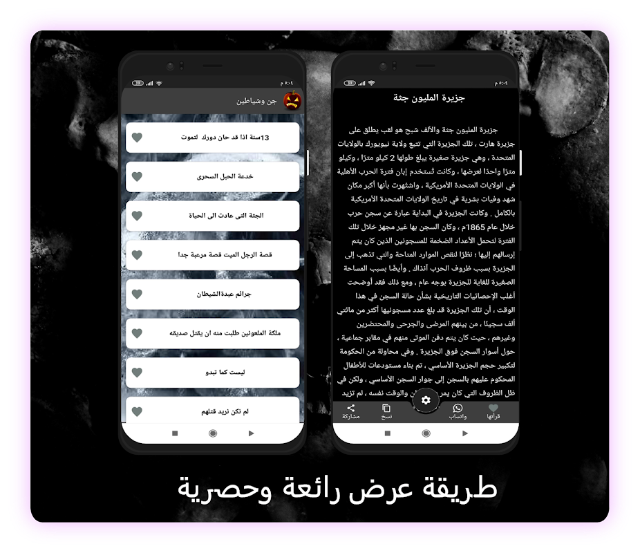 يحتوي التطبيق على مجموعة كبيرة من القصص المرعبة المميزة،