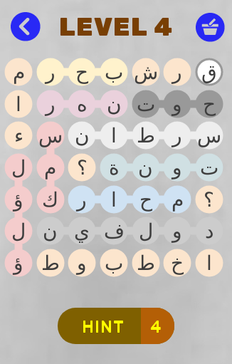 طريقة لعب العبة عن طريق ربط الحروف مع بعضها البعض وتوصيلها لتجمع الكلمة الصحبيحة., فيها اكتر من 20 مرحلة .!