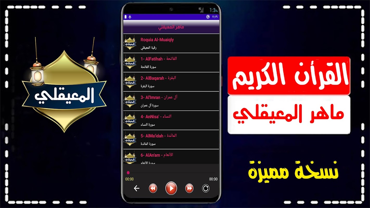 وإذا كنت من محبي الاستماع للشيخ ماهرالمعيقلي في تلاوة القرآن، فإن تطبيق القرآن الكريم بصوت المعيقلي قرأن كامل بدون نت يوفر لك سماع سور القرآن الكريم بصوت المعيقلي mp3 ومجانًا.