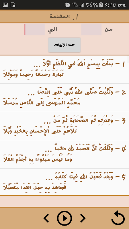 يمكنك التطبيق من تحديد اكثر من بيت وتكراره حتي الحفظ .