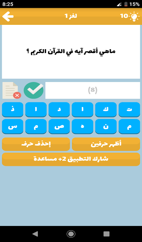 ستعجبك هذه اللعبة خاصة أنها لعبة ذكاء و يجب عليك أن تستخدم عقلك و تفكر جيدا إذا أردت أن تجيب عن الألغاز خاصة إذا كنت من محبي لعبة من سيربح المليون و فطحل العرب و رشفة و لعبة كلمة السر فهذه لللعبة هي عبارة عن تحدي ثقافي و إسلامي فهي تختبر ثقافتك العامة و معلوماتك.