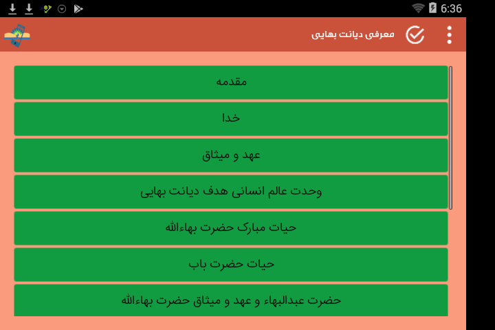ائلیکیشن معرفی دیانت بهایی بر اساس مطالب کتاب 6 روحی گفتگوهای انا و ایملیا تهیه شده است .