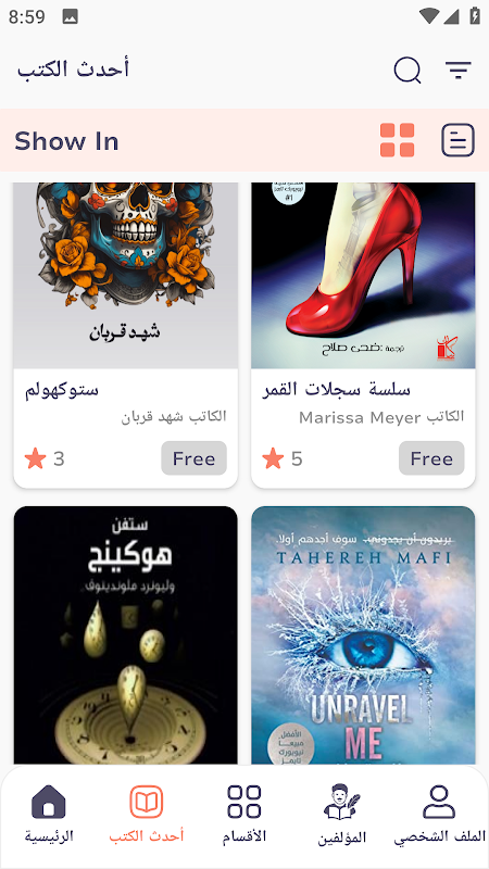 يمكنك استكشاف وقراءة الكتب العربية من مختلف التصنيفات مثل الروايات والقصص