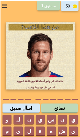 من هذا اللاعب؟ هي لعبة عربية تختبر ثقافتك في عالم كرة القدم عن طريق عرض صور لنجوم كرة القدم أمثال ميسي و رونالدو وأنت تقم بكتابة اسم اللاعب الذي يظهر في الصورة.