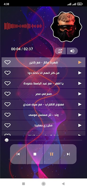 • يمكنك الإنتقال تلقائياً بين الأغاني