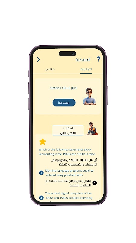 ميزة تصنيف الأسئلة بنجمة لحفظها والمراجعة لاحقًا.