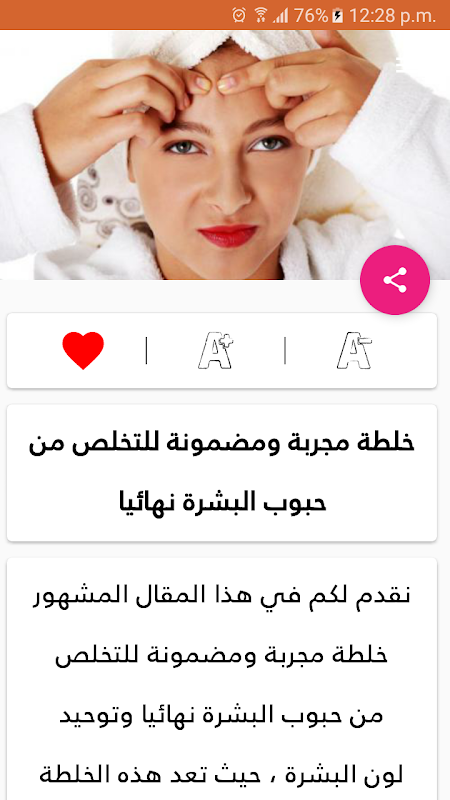 معلومات وصفات لازالة حب الشباب بدون نت APK