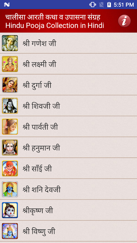 هذا هو تطبيق android مجاني يحتوي على مجموعة كاملة من تعويذة aarti chaalisa و pooja katha upasna لجميع إله الهندوس وآلهةهم. تبدأ كل طقوس هندوسية بعبادة devi و devta مثل shri Ganesh maa Durga Bholenath shivji إلخ.