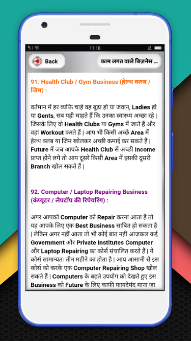 هذه المعرفة التجارية في التطبيق الهندي ستسمح لك بتطبيق معرفتك المكتسبة عن الأعمال التجارية كارني كا تاريكا في اللغة الهندية (business ke baare mein gayan) وتسمح لك باختيار أفضل الأعمال التي تناسبك.