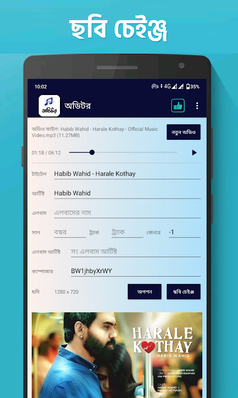 পছন্দের অডিও গানে যেকোনো ছবি সেট করুন। চেইঞ্জ করুন নাম، টাইটেল সহ আরো অনেক কিছু।