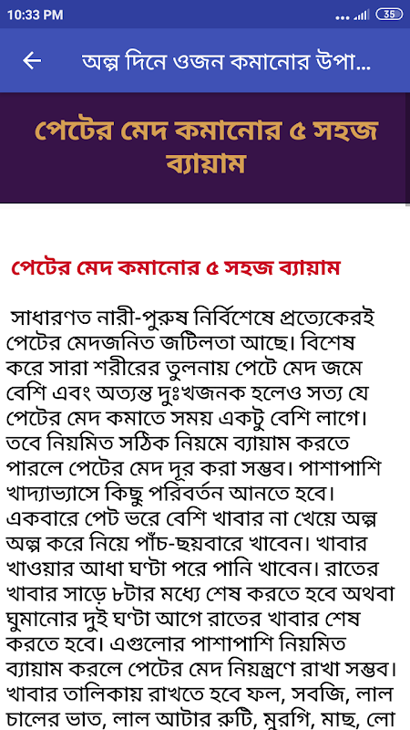 ওজন কমানোর উপায় অ্যাপটি একটি স্বাস্থ্য বিষয়ক অ্যাপ। মেদ ভুরি কমিয়ে আকর্ষণীয় ফিগার পেতে আজই ডাউনলোড করুন ojon komanor upay অ্যাপটি ।