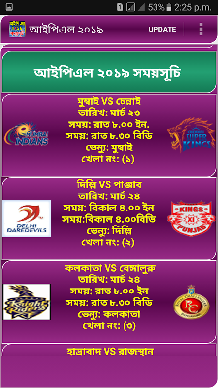 الإصدارات القديمة لـ আইপিএল ২০১৯ সময়সূচী - IPL 2019 Schedule