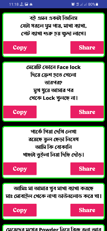 আপনাদের জন্যে নিয়ে এলাম বাংলা হাসির ট্রল আজাইরা ফানি স্ট্যাটাস এই অ্যাপ্লিকেশনটি। এই ফানি অ্যাপটির ক্যাপশন গুলো বিভিন্ন যায়গা থেকে কালেকশন করা এবং একাধিক বার বাছাই করা।