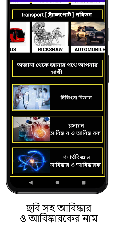 আবিষ্কার ও আবিষ্কারকের সম্পর্কে সকল তথ্য ছবি সহ এই অ্যাপটি মধ্যে দেওয়া হয়েছে।