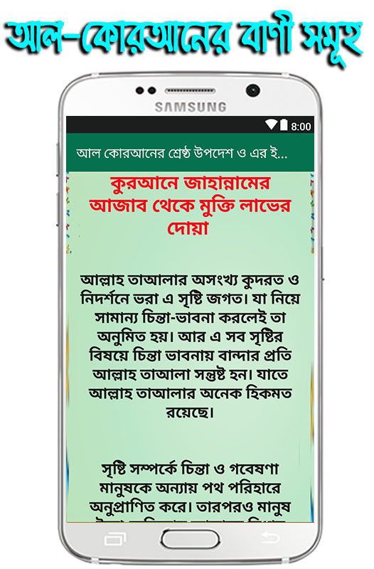 এই অ্যাপে আল কোরআনের শ্রেষ্ঠ উপদেশ বা বাণী ও কোরআনের পরিচয় ও ইতিহাস জানতে পারবেন