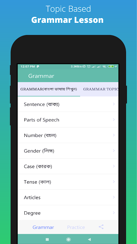 A-Z ইংরেজি গ্রামার (English Grammar) is an effort for learning and improving grammar easily. We, the people of Bengali speaker, have been taught grammar in our schools and colleges, yet we fail to internalize the grammatical aspects of English properly, due to our socio-cultural situations. For many, learning grammar is one of the hardest tasks in their academic career. This app presents you the easiest way of learning English Grammar, in unique pattern and with real-life examples.