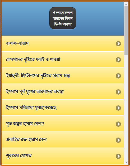 ইসলামে কি কি হালাল হারামের বিধান আছে সেগুলো নিয়ে এই অ্যাপ সাজানো হয়েছে।