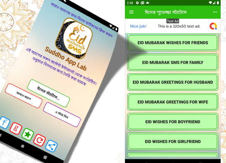 Eid SMS First of all, I wish you all the best. Eid Mubarak. Bangla eid sms is the best way to wish any people including lover girlfriend boyfriend husband wife best friends brother sister and parents. Find beautiful collection of Eid Mubarak wishes, Eid Mubarak Messages with many others best happy eid wishes SMS. Choose from a wide collection of free Eid SMS in English, Eid-al-fitr Festival SMS Greetings for friends, relatives and family and much more. This time we are organizing eid sms app with Eid sms. Eid ul fitter 2021 brings you all kinds of happiness. Let Eid SMS bring endless joy in your life. Eid SMS 2021 app is very nicely arranged. Message your friends today using all the beautiful languages of Eid SMS. You can easily send your people by clicking on the option Inshallah.