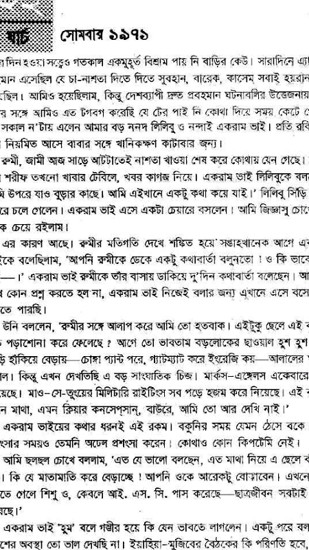 The book is written in the form of a personal diary, which begins on 1 March 1971 and ending on 17 December of that year. During the war, guerrilla activities in the city and the real picture of the situation came up. Shafi Imam Rumi, one of the main characters in the book as a child, and his death was the title of Shaheed Janani Jahanara Imam.