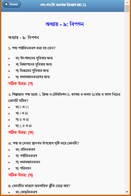 নবম-দশম শ্রেণীর ব্যবসায় উদ্যোগ বিষয়ের নৈর্ব্যক্তিক প্রশ্নোত্তর নিয়ে এই অ্যাপ।