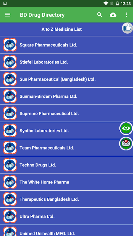 সকল ঔষধ কোম্পানীর ঔষধের নাম ও মূল্য তালিকা নিয়ে ঔষধ নির্দেশিকা এ্যাপ