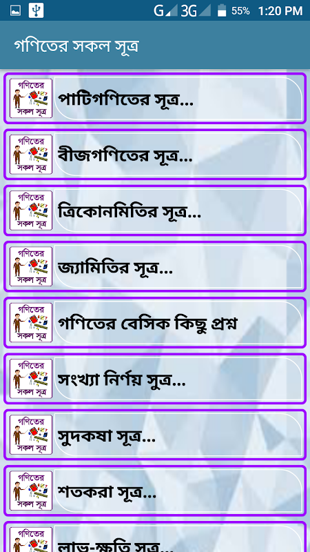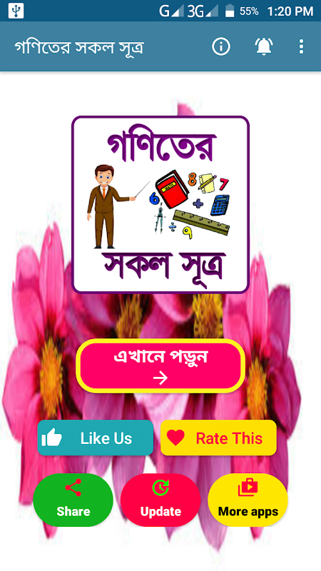 আমরা যারা গণিতে ছাত্র বা বিজ্ঞান বিভাগের ছাত্র তারা অংক করার সময অনেক ঝামেলা পড়েতে হয় যেমন সূত্র মনে থাকেনা তাদের কথা চিন্তা করে গণিতের সূত্রের বাংলা এপস্ টি বানানো হয়।