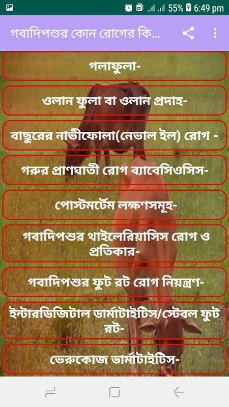 معلومات গবাদিপশুর কোন রোগের কি চিকিৎসা APK