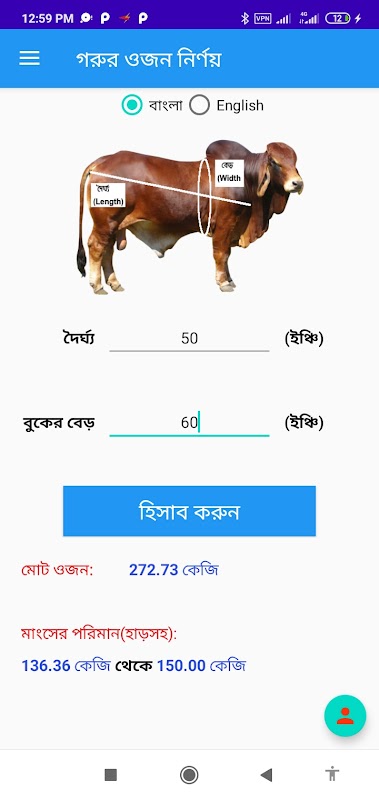 গরুর ওজন ও মাংসের পরিমান | Calculate Weight 1.0.4