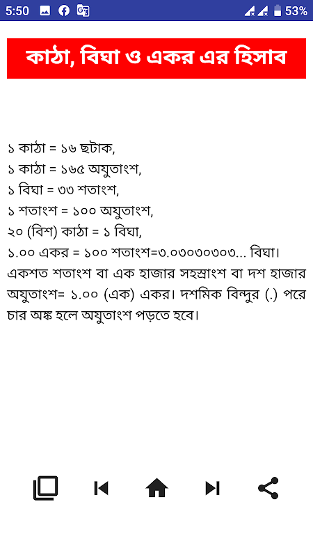 4. কাঠা, বিঘা ও একর এর হিসাব