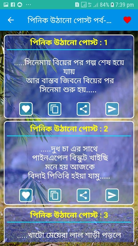 আপনে খুব সহজেই Apps টির এসএমএস ও স্ট্যাটাস এক Click এই কপি,শেয়ার, সেন্ট করতে পারবেন।