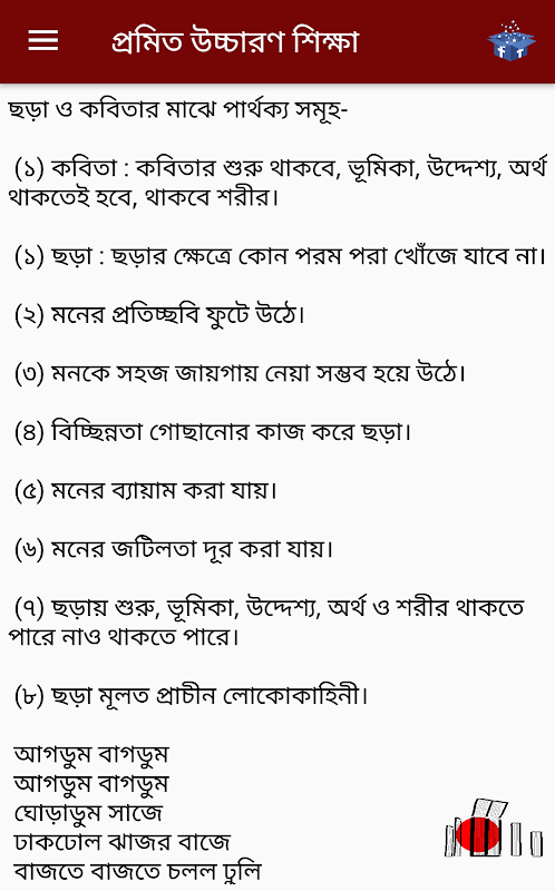 المعيار القياسي الوحيد المقبول / المعيار البنغالي والأكاديمية البنغالية المعترف بها القاموس 'Bangla Academy Bangla الأردية قاموس النطق' هو اسم الأكاديمية البنغالية التي تنشر "ياسمين نازان" يا سيدي. خطاب نارا باسواس أساسي في تدريس النطق القياسي (ساحرة نقية). يتم تقديم الشكل الكتابي للنطق القياسي هنا على أساس الموضوع.