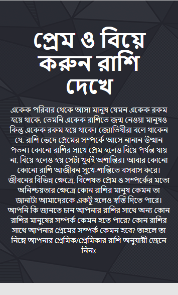 প্রেম ও বিয়ে করুন রাশি দেখে 0.0.2