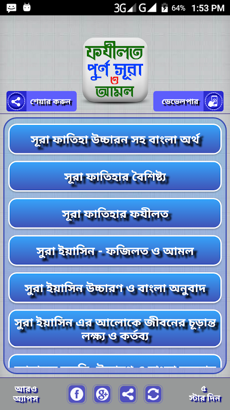 تطبيق سورة ياسين مجاني بالكامل. ستتيح لك تطبيقات سورة ياسين البنغالية هذه معرفة معنى هذه السورة وأيضًا يمكنك القراءة عن ظهر قلب. نطق هذا yasin surah البنغالية في البنغالية. لذا فإن أولئك الذين لا يستطيعون قراءة اللغة العربية يمكنهم قراءة هذا أيضًا.