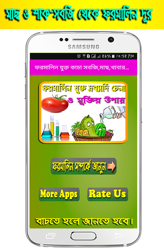 ফরমালিন যুক্ত কাচা সবজি,মাছ,খাবার চেনা ও সমাধান অ্যাপে আপনাকে অভিনন্দন ।