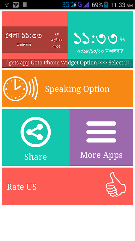 হোম স্ক্রিন এ বাংলায় সময় ও তারিখ দেখার চমৎকার একটি এপ্লিকেশন। এটি একটি widget এপ্লিকেশন।
