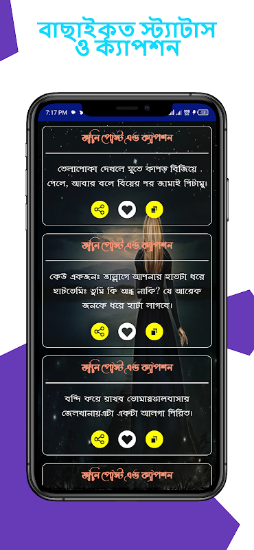 বাংলা স্ট্যাটাস ও ক্যাপশন এপটি সকল ধরনের স্টাটাস দেওয়া হয়েছে