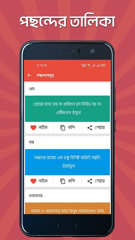 ❤️ الإعجابات والمفضلة: يمكنك إضافة اقتباسات وأقوال مفضلة إلى قائمتك المفضلة في أي وقت، وسيتم حفظها بمرور الوقت ويمكنك رؤيتها دائمًا.