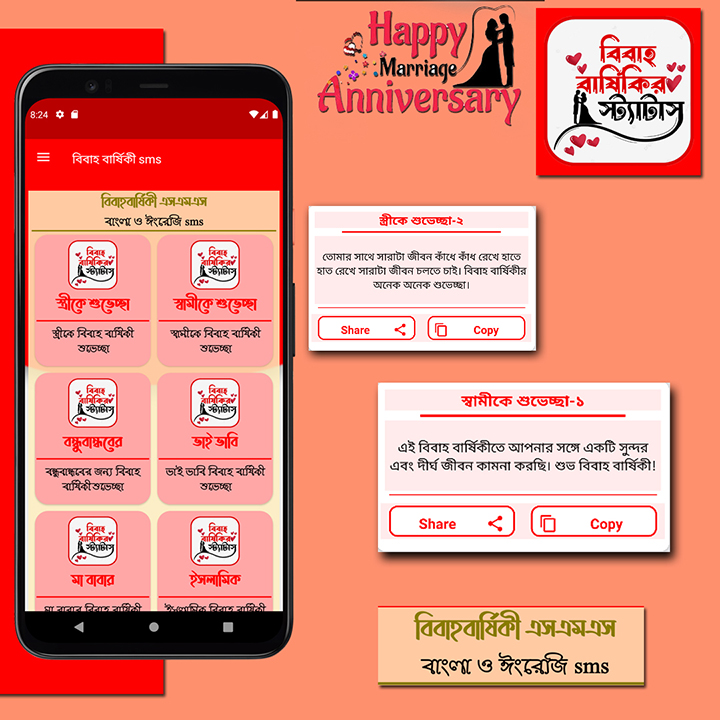 বিবাহ বার্ষিকী স্ট্যাটাস ছবি সহ বিবাহ বার্ষিকী এসএমএস বাংলা মেসেজ সফটওয়্যার الرسائل القصيرة