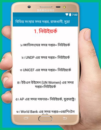 Bcs preparation ও bank job preparation এর ক্ষেত্রে বিশ্বের সকল দেশের রাজধানী ও মুদ্রার নাম মনে রাখা খুবুই গুরুত্বপূর্ণ একটি বিষয়। এই সব ক্ষেত্রে আমরা সাহায্য নিতে পারি নানা ধরনের ভূগোলের বই অথবা আমাদের হাতের কাছের জিনিস মোবাইল। আমরা খুব সহজেই মোবাইল অ্যাপ দেশের নাম, রাজধানী এবং মুদ্রার নাম এর মাধ্যমে জানতে পারি পৃথিবীর সব দেশের রাজধানী ও মুদ্রার নাম। এই সব পরীক্ষায় অনেক সময় বিভিন্ন দেশ ও রাজধানীর নাম প্রশ্নে চলে আছে। কিন্তু এতগুলো দেশের নামের তালিকা থেকে সব দেশের রাজধানী ও মুদ্রার নাম মনে রাখা সহজ বিষয় নয়। আবার বিসিএস প্রস্তুতির ক্ষেত্রে এটি একটি গুরুত্বপূর্ণ বিষয়। তাই আমরা এই অ্যাপ এর সাহায্যে খুব সহজেই সহজ কিছু পন্থা অবলম্বন করে মনে রাখতে পারি বিভিন্ন দেশ ও রাজধানীর নাম এবং সাথে সকল দেশের মুদ্রার নাম। এতে করে আপনার চাকরির প্রস্তুতির ক্ষেত্রে আপনি এক ধাপ এগিয়ে থাকবেন সর্বদা। বর্তমান চাকরির বাজারে বাড়ছে প্রতিযোগিতা এবং কঠিন হচ্ছে প্রশ্ন পত্র। আর এই চাকরির বাজারে বিসিএস এর চাহিদা বাড়ছে দিনকে দিন। তাই প্রস্তুতির ক্ষেত্রে কোন ধরনের ছাড় দেয়া যাবে না। এক এক করে মুখস্থ করে সব দেশের রাজধানী ও মুদ্রার নাম মনে রাখা যেমন অনেক সময়ের ব্যাপার তার চেয়েও বেশি কষ্টসাধ্য হচ্ছে এগুলো মনে রাখা এবং এত কষ্টের পর যখন কিছু মনে থাকবে না তখন সেটা আপনার মনোবল আরও দুর্বল করে তুলবে। তাই আপনার বিসিএস প্রস্তুতি ১০০% করতে এবং আপনার মনোবল শক্ত করতে এখনি ডাউনলোড করে নিতে পারেন দেশের নাম, রাজধানী এবং মুদ্রার নাম অ্যাপটি।