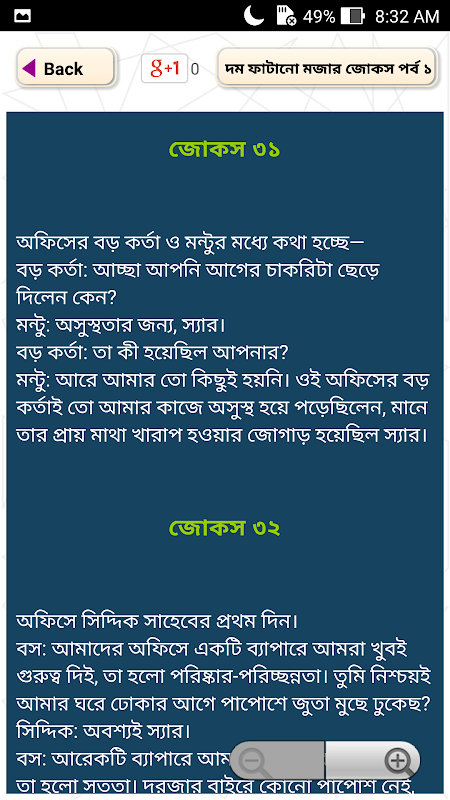 জোকস বাংলা অ্যাপটি খুবই উপকারি অ্যাপ যারা মানুষকে হাসাতে চান তাদের জন্য। মজার জোকস খুব সহজেই মুখস্ত করা যায় এবয় শেয়ার করা যায়। হাসির জোকস যা আপনাদের সব সময় অনন্দ দিবে। যখন আপনাদের মন খারাপ থাকবে তখন আপনারা এই অ্যাপটি থেকে হাসির কৌতুক গুলো পড়বেন মন ভালো হয়ে যাবে। বাংলা কৌতুক অ্যাপটি সত্যিই অসাধারণ।