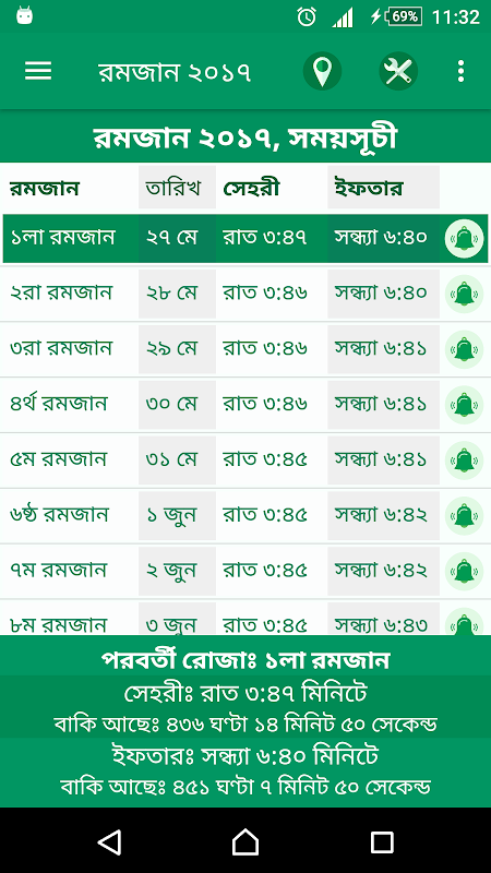Ramadan 2017, Sehri and Iftar Alarm and Timings, Tasbih, Romjan Doa, Fojilot