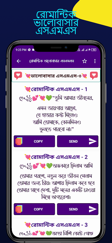 يحتوي تطبيق عيد الحب هذا على عيد الحب 2025 وهو ممتع للجميع. إذا كان لديك مهرجان أسبوع عيد الحب الخاص بك، فيمكنك استخدام تطبيقات Bangla sms التي تحتوي على رسائل عيد الحب أو الرسائل القصيرة لعيد الحب، والرسائل القصيرة الحزينة، والرسائل القصيرة valobashar، والرسائل القصيرة koster التي يمكنك إرسالها لأي شخص تختاره.