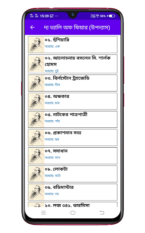 শার্লক হোমস সমগ্র - অ্যাপটিতে নিম্নলিখিত বিষয়গুলি রয়েছে।